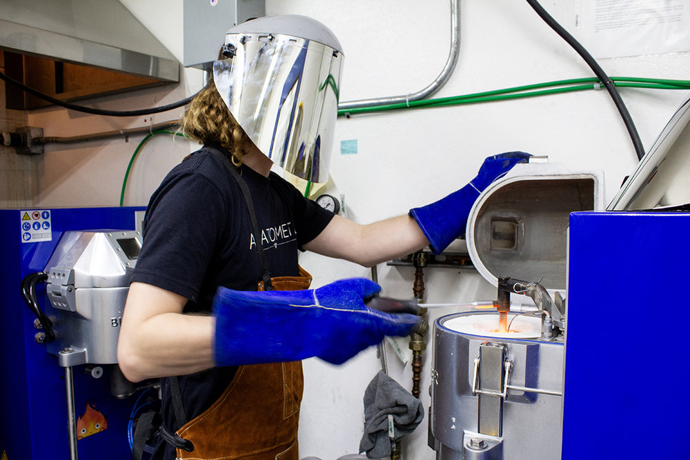 We use ASTM F-136 titanium, ASTM F-138 stainless steel, niobium, and solid 18k gold, all responsibly sourced from U.S. mills. Our gold is conflict-free, cast in-house, and never hollow.
